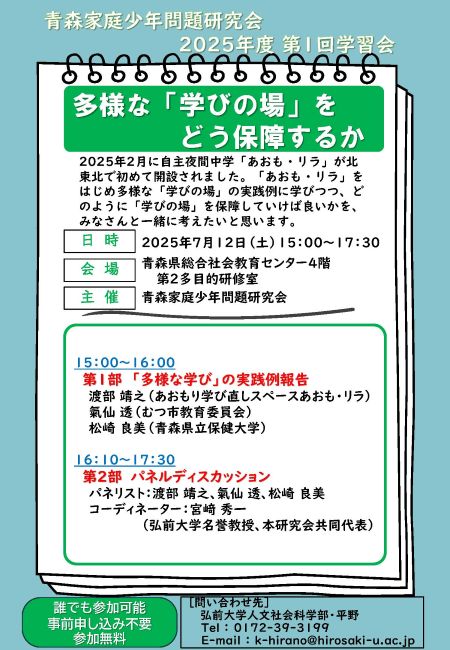 於 弘前大学人文学部棟4階多目的ホール 主催:青森家庭少年問題研究会 チラシ