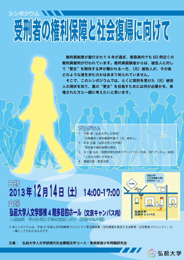 シンポジウム「現代の青少年問題を考える〜八戸地域の司法・教育の現場から〜」:3月13日(土)午後1時〜3時(弘前大学八戸サテライト)