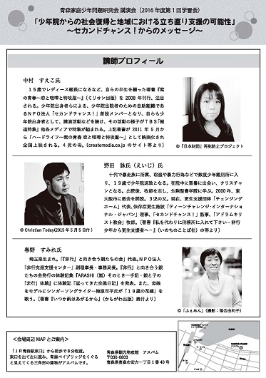 テーマ:「少年院からの社会復帰と地域における立ち直り支援の可能性〜セカンドチャンス!からのメッセージ〜」