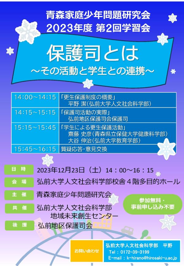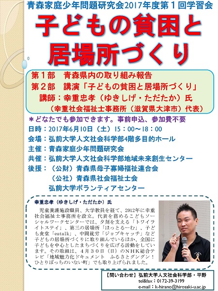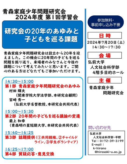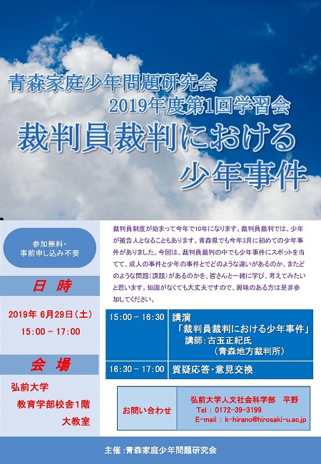 於 弘前大学人文学部棟4階多目的ホール 主催:青森家庭少年問題研究会 チラシ